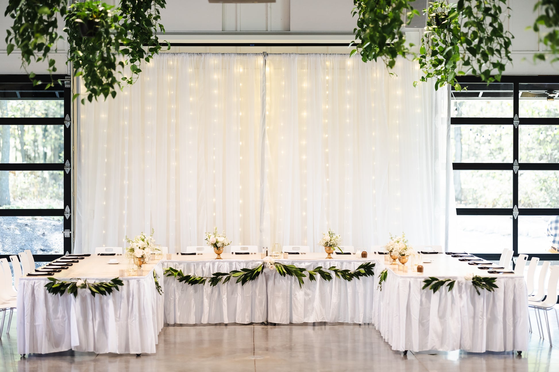 Create a stunning focal point for your wedding or special event with our elegant white drape backdrop, beautifully accented with warm LED string lights. Perfect behind a sweetheart table, cake table, or photo area, this backdrop adds a soft, romantic glow that enhances any venue.